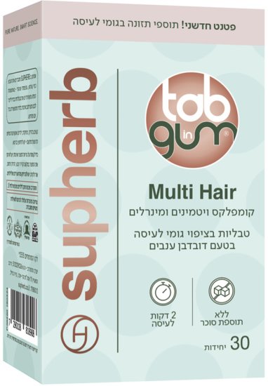 לסיקור המלא »קומפלקס Multi Hair מבית Supherb מציע גישה ייחודית לבעיית נשירת השיער באמצעות גומי לעיסה טעים המשלב ויטמינים, מינרלים וחומרים פעילים. התוסף כולל ביוטין בריכוז גבוה, אבץ, סלניום, ויטמיני B ותמצית במבוק עשירה בסיליקה